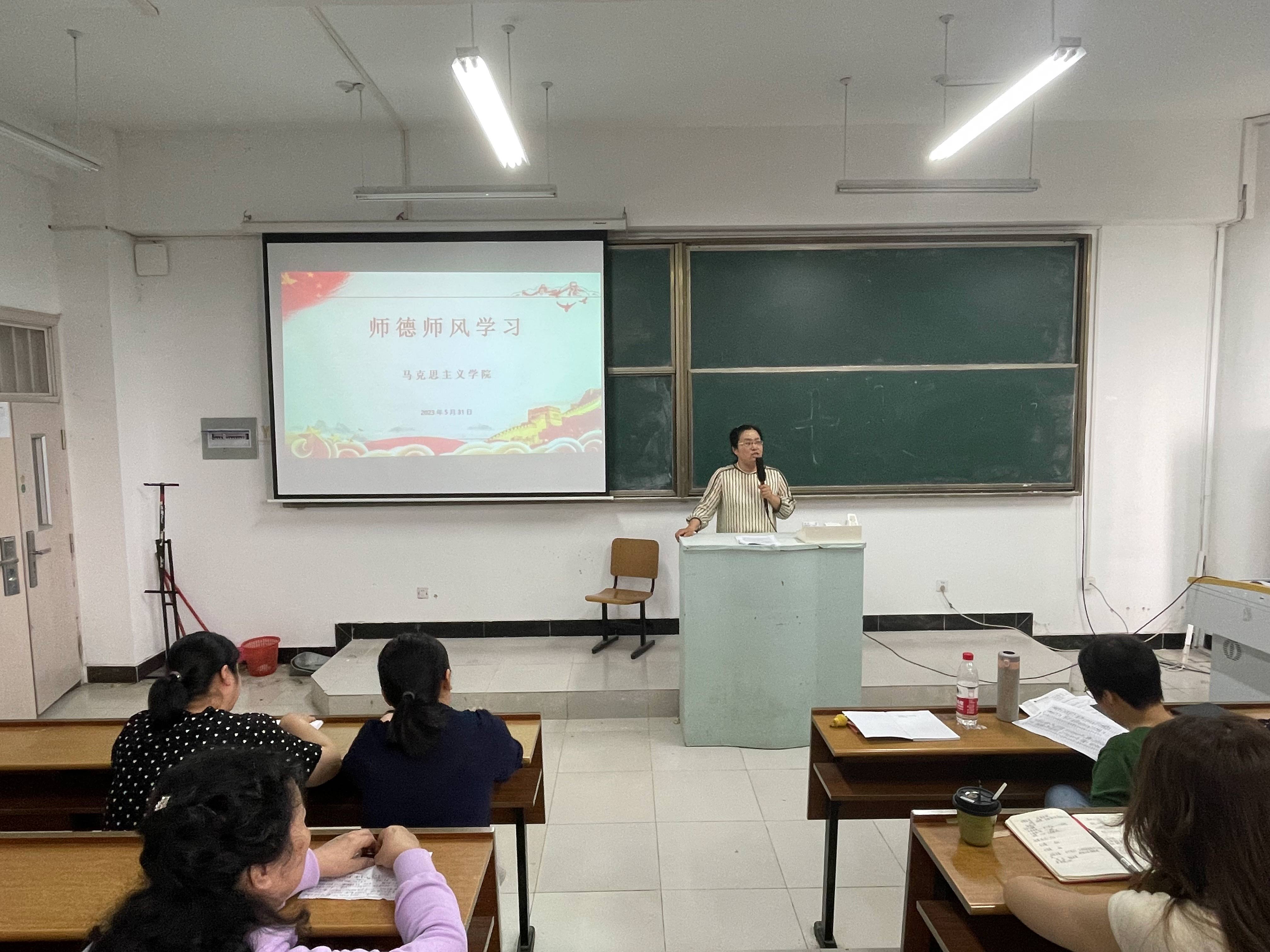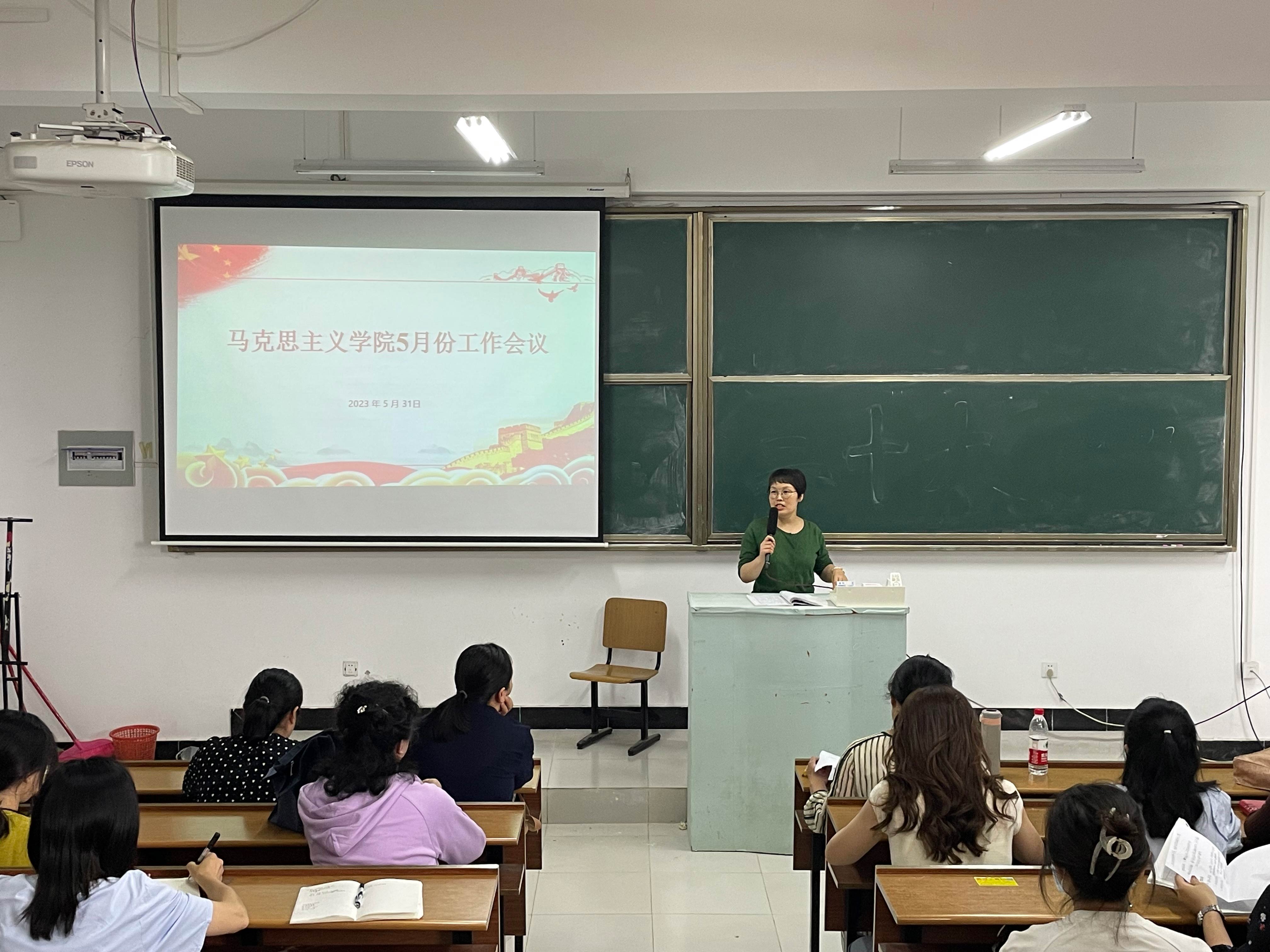 本网讯(通讯员:吴之娴)为扎实推进本科教育教学审核评估工作,进一步强化教师思想政治和师德师风建设,深入学习贯彻习近平总书记关于教育的重要论述和教师队伍建设的重要指示精神。5月31日下午,马克思主义学院召开教学工作及师德师风专项会议,对于接下来教育教学审核评估、师德师风学习建设等工作作出部署与要求。本次会议由马克思主义学院教学秘书章凤萍主持,副院长董丽娟出席并讲话,马克思主义学院全体教职工参会。