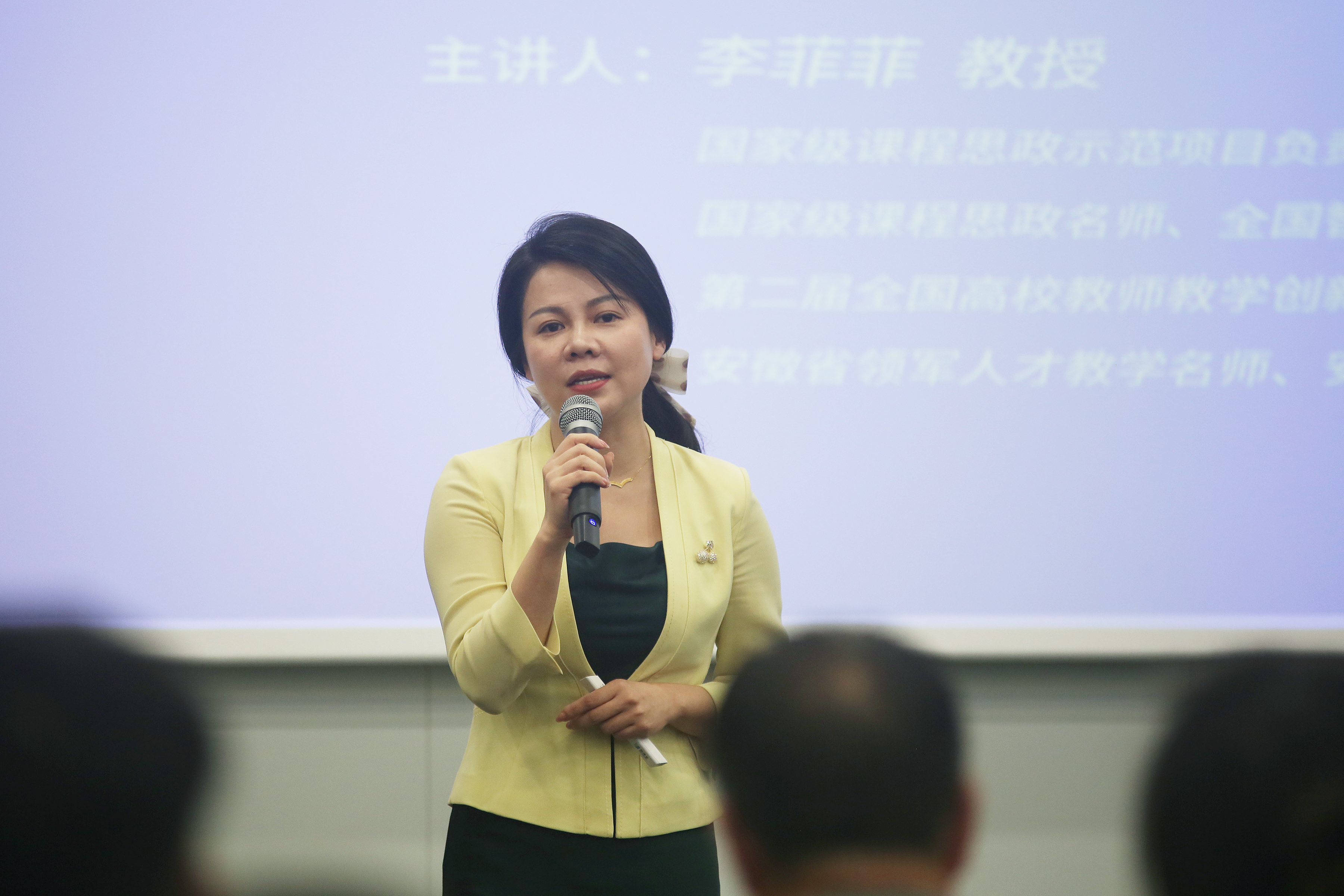 本网讯(通讯员:华芳、程茜)为全面落实立德树人根本任务,推进课程思政建设,提升教师混合式教学能力,9月13日,学校邀请安徽医科大学李菲菲教授开展“名师讲坛——混合式教学的案例设计与课程思政融入”培训活动。本次活动由教师能力发展中心主办、药学院承办。各二级学院系主任、教师代表参加现场培训,同步进行雨课堂线上直播。