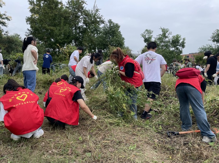 在劳动教育研究中心的统筹安排组织下,各学院师生代表到达基地并明确好劳动分工,随后师生代表们投入劳动,纷纷拿上劳动工具参与到劳动实践中去。新生们表现出了极高的积极性和责任感,他们以饱满的热情投入到劳动实践中,协同配合,互相帮助,不知不觉新同学之间的陌生感早已消散。