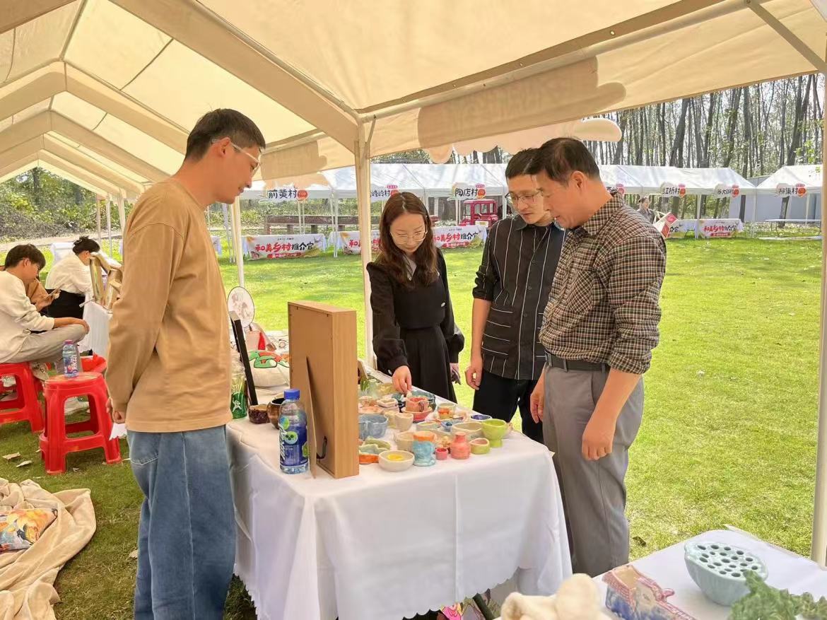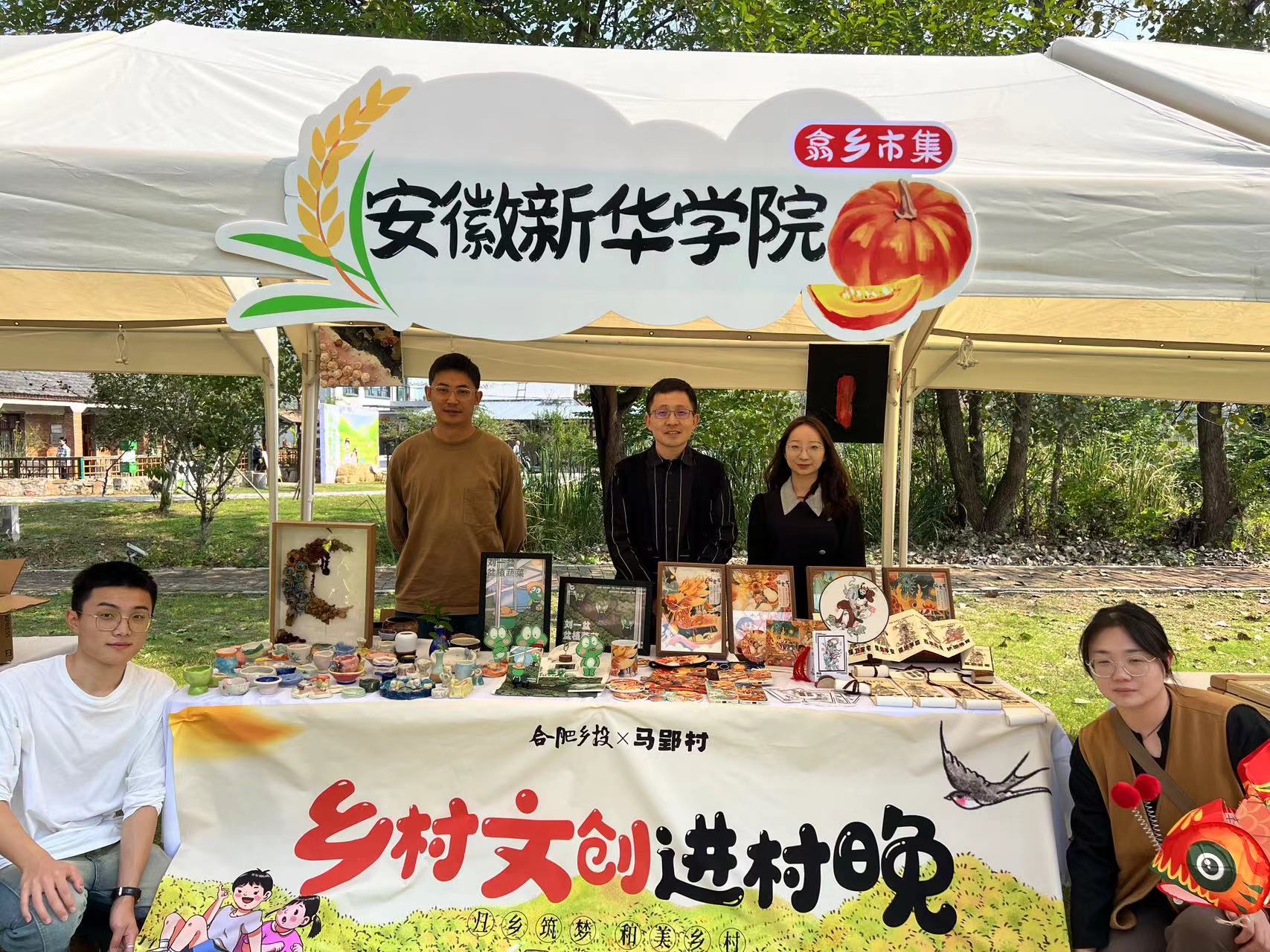 本网讯(通讯员:江河、朱蕾)为展现我国新农村丰硕成果和乡村振兴新气象,由中国文化和旅游部主办,文化和旅游部公共服务司、文化和旅游部公共文化发展中心、安徽省文化和旅游厅承办,安徽省文化馆、中国文化馆协会、合肥市文化和旅游局、长丰县人民政府实施的“大地欢歌·美好安徽”全国秋季“村晚”合肥长丰示范展示活动于2023年10月14日在合肥市长丰县杨庙镇马郢村举行,国家公共文化云、安徽公共文化云全程直播。贝博官网艺术学院教师王晓俊、朱蕾、王伟指导学生创作的30多件文创作品荣幸被推选参加本次现场“乡村好物展”直播活动。