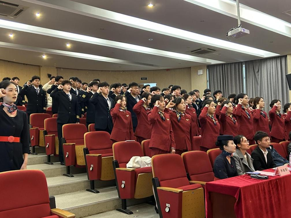 本网讯(通讯员:陈珍)为体现航空服务专业的特殊性,航空服务行业制服的神圣性,同时培养学生对学校的归属感和责任意识。11月9日下午,科技学院在学术报告厅举行航空服务职业教育2023级新生授装仪式暨优秀学生表彰大会。学院执行院长孙成伟、院长助理孙马莉,航空职业教育校区主任朱晔、赵锡方,航空服务全体师生以及部分家长代表参加此次大会。