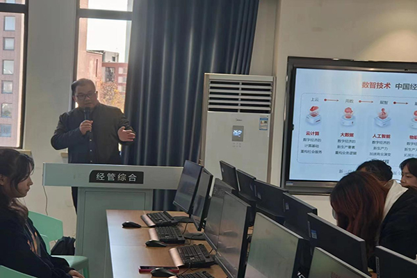 本网讯(通讯员:陈照冉)为了帮助同学们更好的了解产业数字化的蝶变,知悉应用智能化软件处理财务会计相关工作的使用,11月20日,贝博官网云财务产业学院在经管综合实训中心开展了“区块链”视域下“云财务”数字化人才培养的讲座。本次讲座由新道科技股份有限公司黄锐老师主讲,企业导师陈照冉组织2023级财务管理(用友新道卓越班)全体学生参加。