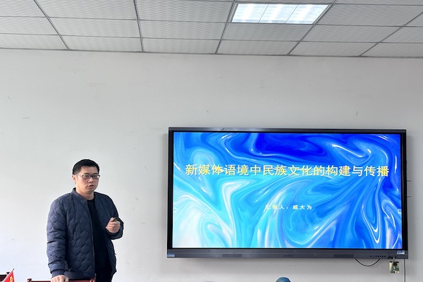 戚大为老师先向同学们提出了四个问题,分别是什么是新媒体?民族文化的内核与符号是什么?为什么李子柒在海外如此受欢迎?信息如果传播,传播的模式有哪些?带着这四个问题开始了报告。报告首先介绍了在新媒体中民族文化的表现;接着介绍了新媒体中表现突出的作品,其中重点介绍了民族文化表达的方法和如何讲好中国故事,传播好中国形象的手法;最后,戚老师结合当前舆情与传播模式,介绍了一种基于SEIR模型的传播方式,以及民族文化在新媒体中应用的研究方法、技术路线和实现过程等。