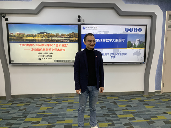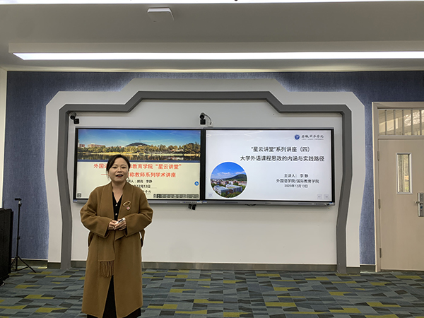 本网讯(通讯员:林清)12月13日下午,外国语学院/国际教育学院“星云讲堂”之高级职称教师系列学术讲座第二场在智慧教室101举行,主讲人为公共英语教学部主任郝亮副教授和骨干教师李静副教授,学院2023年新进教师以及公共英语教学部全体教师参加了本场讲座,讲座由科技创新中心主任佘月月主持。