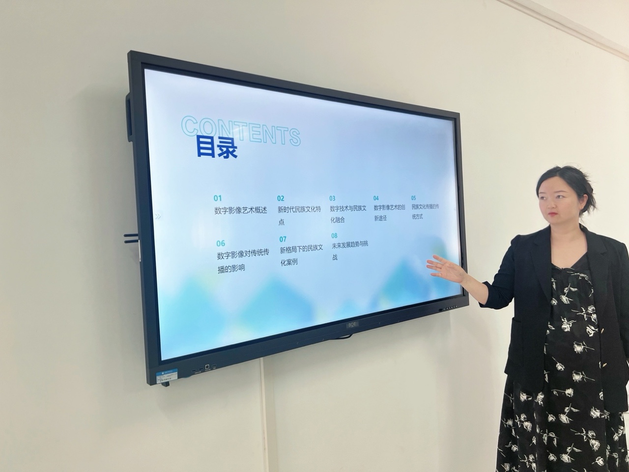 许梅还详细介绍了数字影像艺术在实际应用中的各种可能性,包括影视制作、网络传播、虚拟现实等多个领域。她鼓励同学们要积极运用数字影像艺术,为民族文化传播贡献自己的力量。