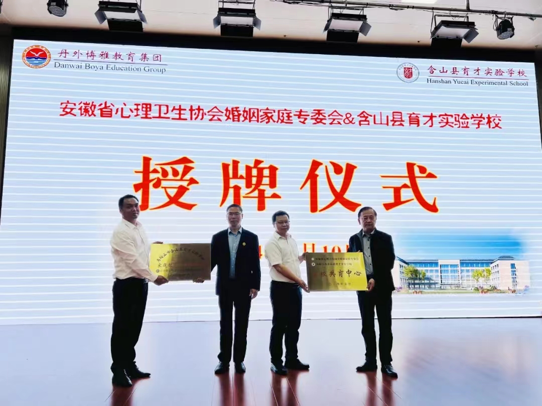 活动分两个部分,首先是安徽省心理卫生协会婚姻家庭专委会助力赋能含山县育才实验学校,成立“家校共育中心”“家庭教育指导服务站”。共同促进含山育才实验学校在心理健康教育工作领域进入了新的里程碑,让家庭教育活动走进校园,助力学生、家长与学校更好发展。