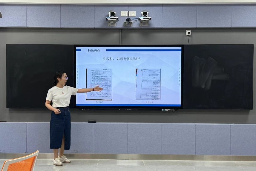 本次活动分为教学展示和评委点评两个环节进行。在教学展示环节,九位参赛教师结合各自教案讲稿的特点,从思路设计、特色亮点和改进方向三个方面进行详细汇报。精美的课件、流畅的表达、巧妙的构思全方位展现了参赛教师们的教学智慧,也让评委和观赛教师们感受到他们内心的那一份炙热而真诚的教学热情与笃定的教育情怀。