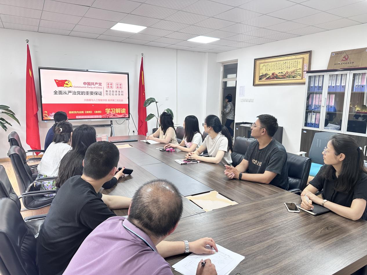 本网讯( 通讯员:崔妹)为加强党的建设,进一步严明党的纪律,提高党员的党性修养和规矩意识,6月4日至6月5日,大数据与人工智能学院党总支精心组织并开展了为期两天的党纪学习教育读书班活动。本次读书班采用了集中自学、专题党课和集中研讨相结合的形式,分阶段、有重点地推进学习进程。在集中自学阶段,党员们认真研读了习近平总书记关于党纪学习教育的重要讲话和重要指示精神,学深悟透新修订的《中国共产党纪律处分条例》,深入理解了新时代党的建设总要求和全面从严治党的重大意义。