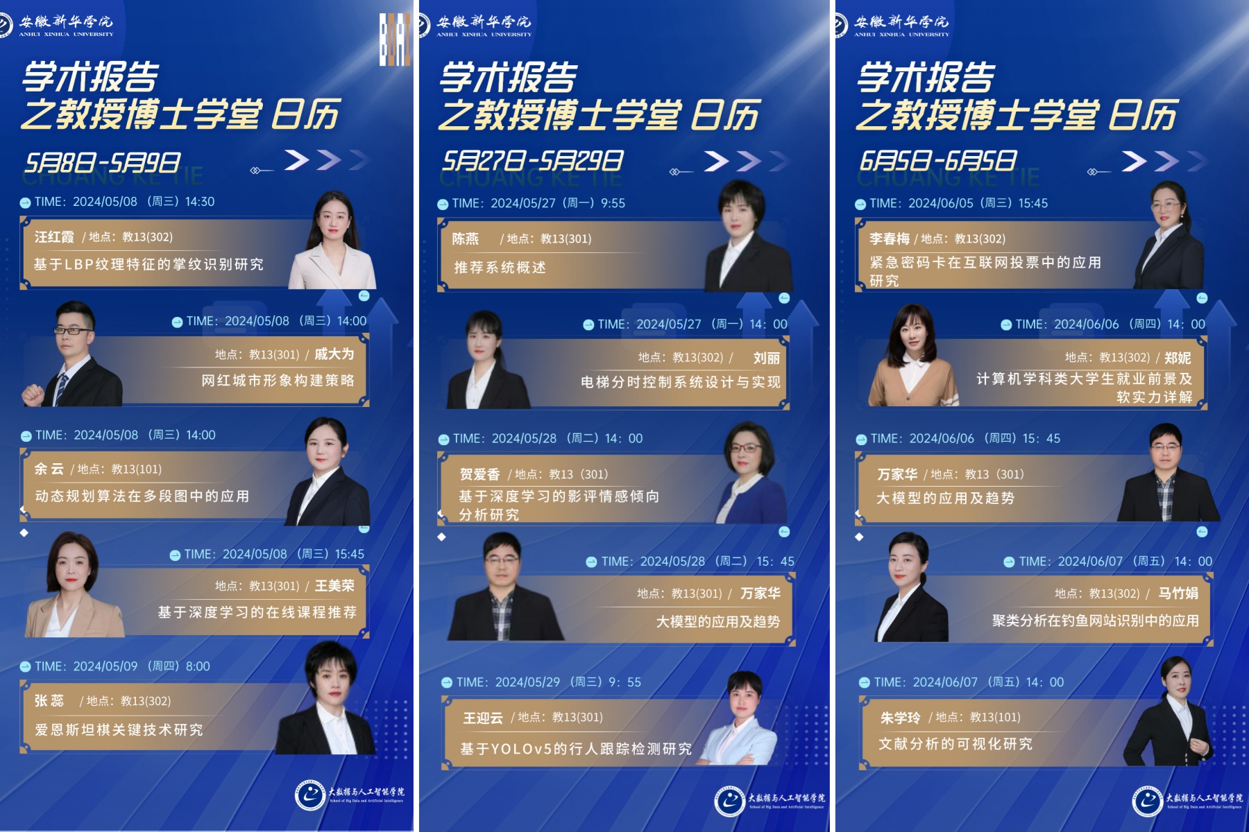 大数据与人工智能学院副高及以上职称教师或博士教师围绕计算机相关研究为师生们开展了多达49场次的学术活动,报告主题丰富多样。这些报告涵盖了计算机科学的各个领域,包括人工智能、机器学习、数据科学、网络安全、软件工程、数据库管理等。教师们在分享研究成果的同时,为学生们提供了实际的编程示例和案例研究,帮助学生能够更好地理解和应用这些技术。