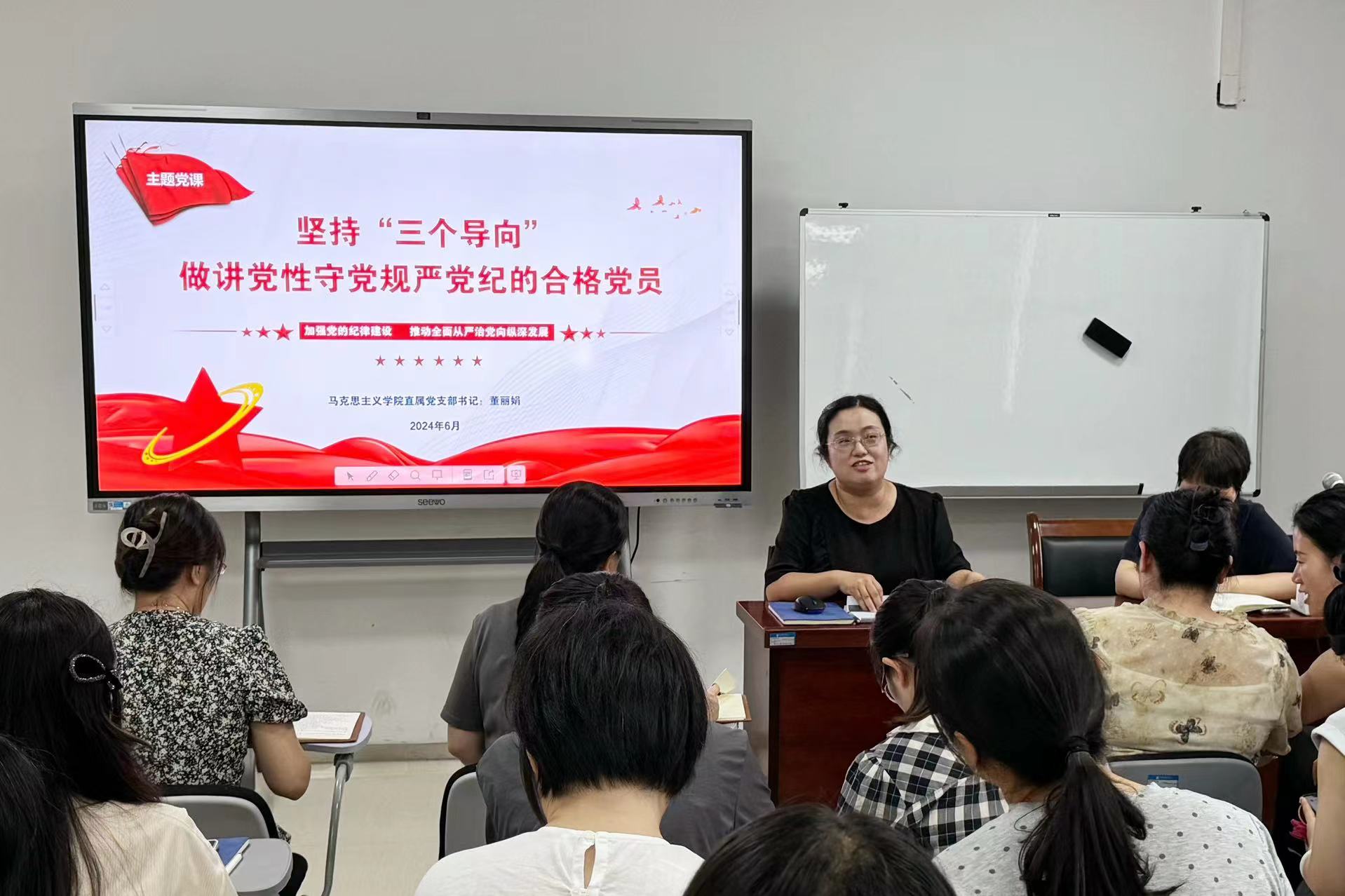 本网讯(通讯员:李颖)按照学校党委党纪学习教育工作安排和学院工作开展情况,马克思主义学院直属党支部在组织全体党员自学的基础上,6月19日下午,马克思主义学院召开党纪学习教育集中学习会议,党支部书记董丽娟上专题党课,学院全体教师参加了学习。