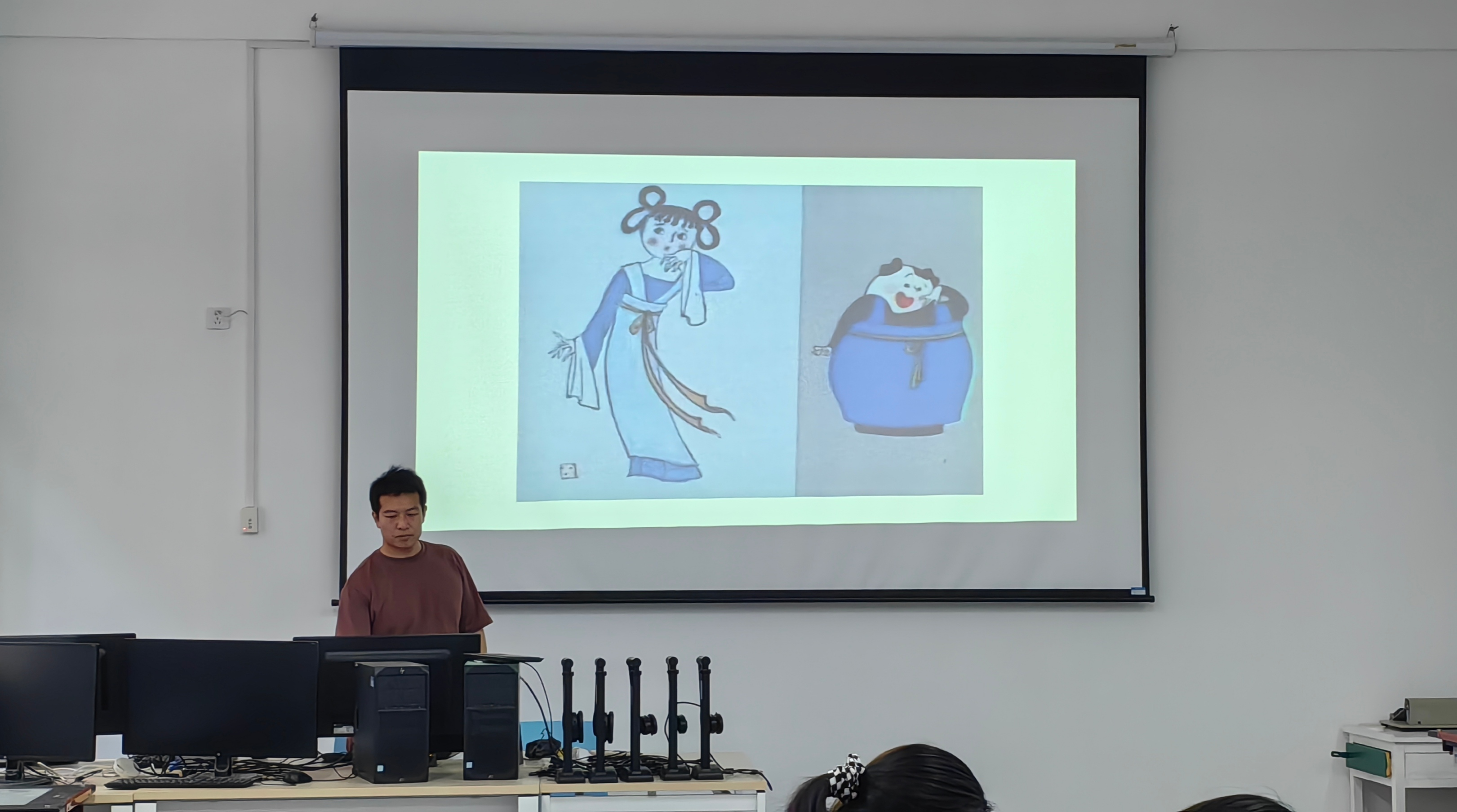 第四场讲座主讲嘉宾——艺术学院周蓉老师,为大家带来了关于上美影厂的艺术创作与研究的分享。她详细介绍了上美影厂的历史沿革、创作理念以及代表作品,并深入剖析了这些作品背后的艺术创作过程和技巧。学生们通过此次分享,对上美影厂的艺术风格和创作理念有了更深入的了解,也为自己未来的动画创作提供了宝贵的借鉴和启示。