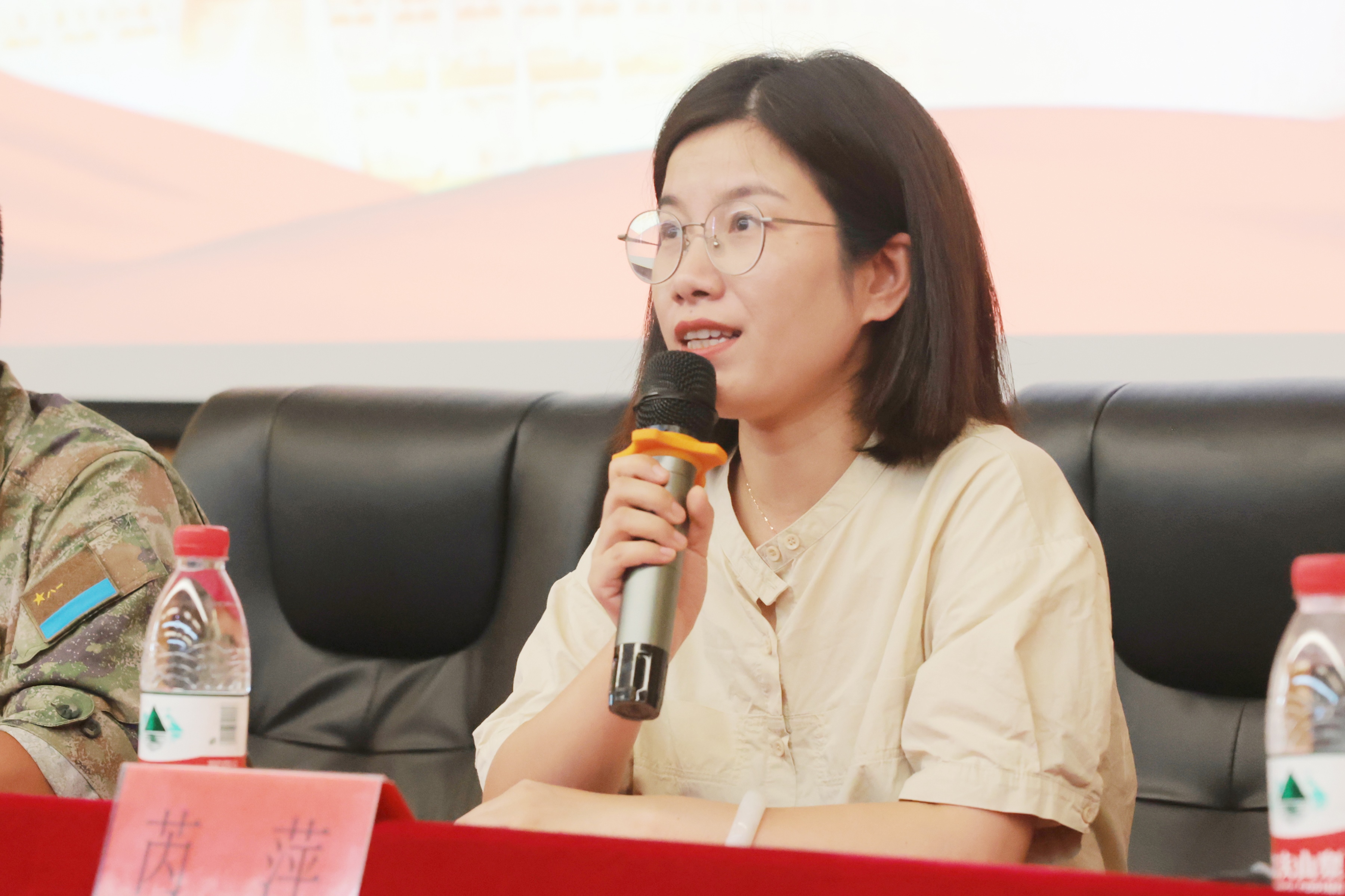 最后,学生处处长芮萍做指导讲话,她从提高认识,增强军训工作的责任意识;守住底线,强化军训工作的安全意识;通力合作,提高军训工作的协作意识三个方面对军训工作做出细致指导和具体要求,她鼓励全体教官和参与军训工作的学工人员,以昂扬的状态投入军训工作,为圆满完成军训任务而努力。