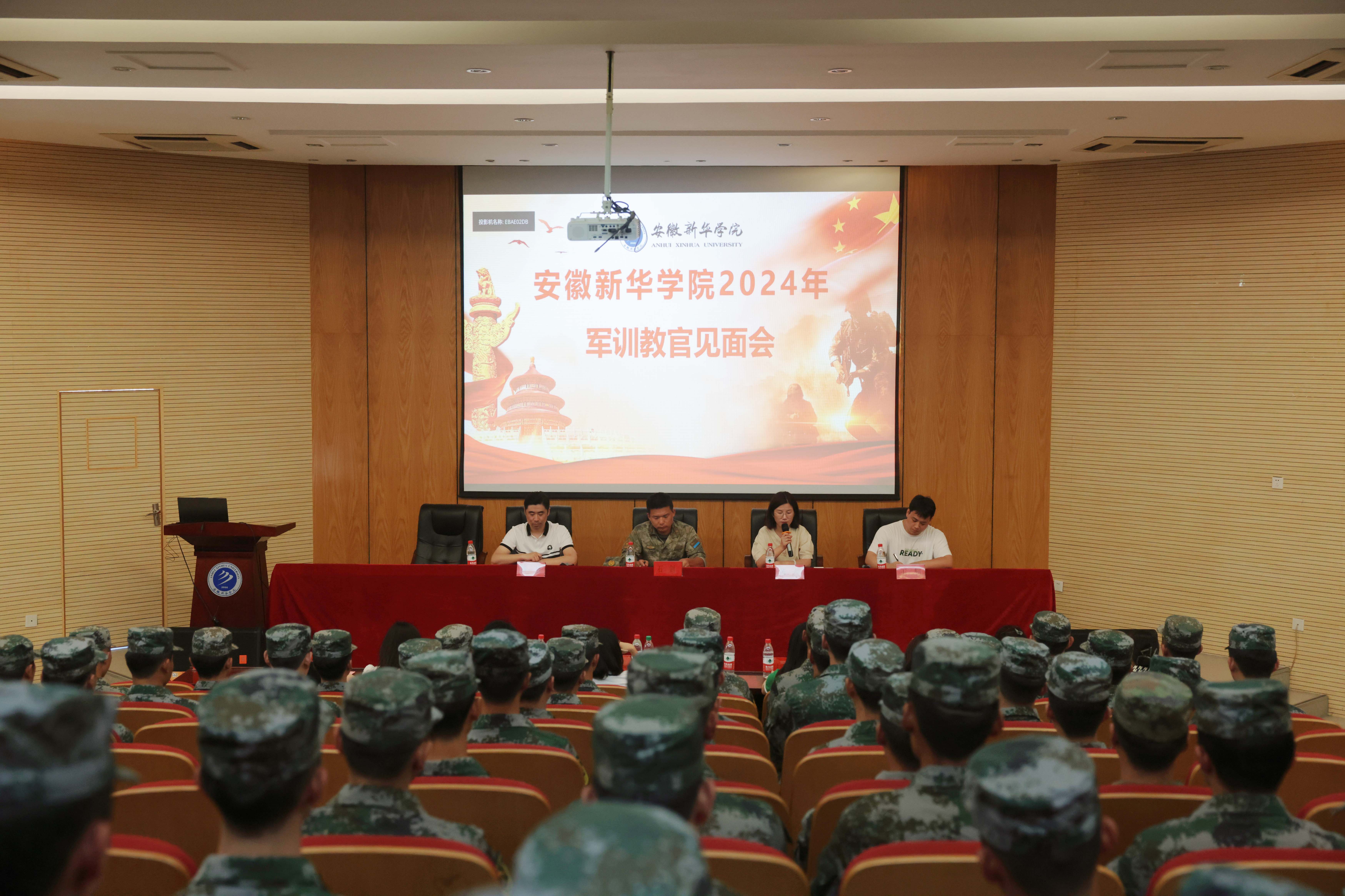 本网讯(通讯员:朱玉玲 摄影:融媒体工作室/潘雯、金鑫)为全面做好2024年新生军训工作,扎实筑牢学生坚定的理想信念基础,教授并实践基本的军事理论知识与技能,学校于9月3日在学术报告厅召开2024年新生军训教官见面会。合肥市蜀山区武装部军事科参谋石剑、学生处处长芮萍、学生处处长助理黄梦、军训团副团长王轲以及承担贝博官网2024年军训工作的全体教官、各二级学院分管学生工作的副院长/院长助理、军训工作小组成员参加本次会议。会议由黄梦主持。