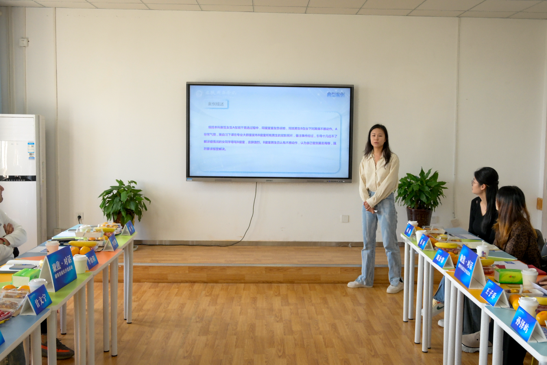 随后,胡晶晶和李苗分别作辅导员工作经验分享,同时就老师们提出的多样化学生工作问题进行交流与讨论,现场氛围轻松活跃。