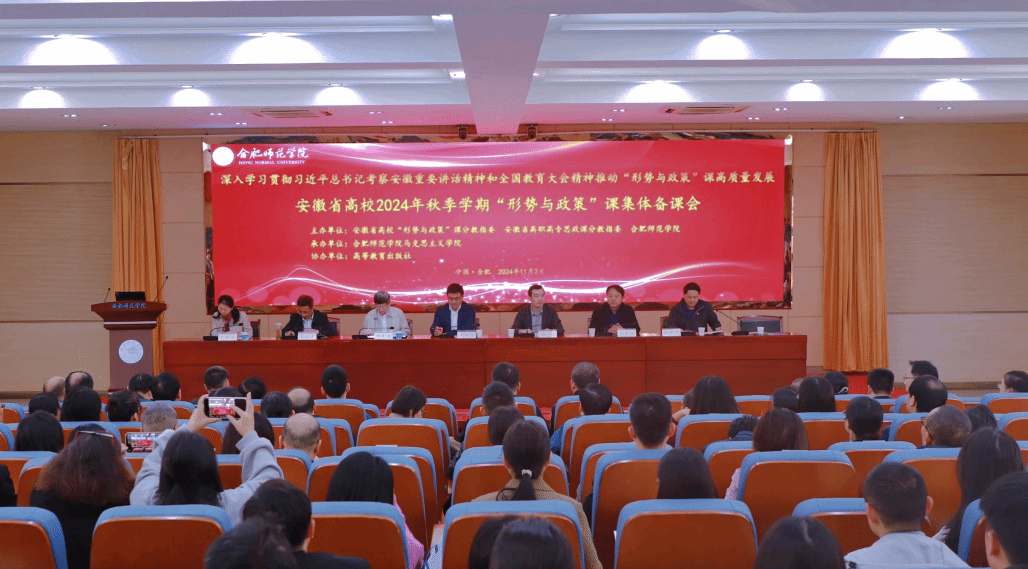 本网讯(通讯员:李静)为深入学习贯彻党的二十届三中全会精神和习近平总书记考察安徽重要讲话精神,及时将党的创新理论融入“形势与政策”课教学,不断提升“形势与政策”课教学的针对性和吸引力。11月2日,全省高校2024年秋季学期“形势与政策”课集体备课会在合肥举办。本次会议由安徽省高校“形势与政策”课分教指委、安徽省高职高专思政课分教指委和我院共同主办,高等教育出版社协办,合肥师范学院马克思主义学院具体承办。全省近百所高校马克思主义学院负责人、“形势与政策”课教师等160余人参加会议。贝博官网马克思主义学院副院长董丽娟(主持工作)、教师李静参加了此次会议。