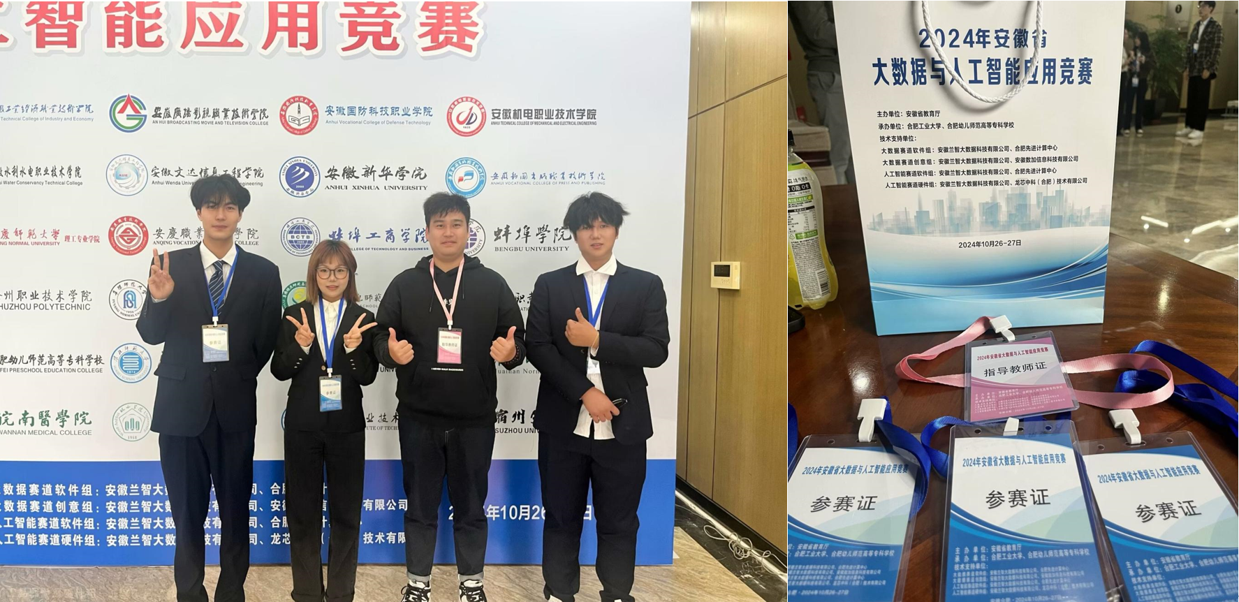 本网讯(通讯员:王婷伟)10月26日至27日,2024年安徽省大数据与人工智能应用竞赛决赛在合肥幼儿师范高等专科学校举行。在本次大赛中,贝博官网大数据与人工智能学院参赛队伍荣获了一等奖1项、三等奖2项的优异成绩。其中,由李梦康、琚汪慧老师带领的团队:张文豪、邓亚凤、马圣盛,荣获安徽省一等奖,是贝博官网近三年在该赛事中的一项重要突破。