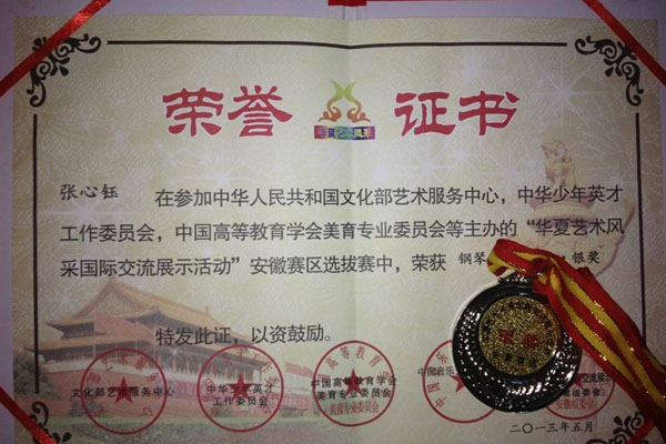 本网讯(潘池群)2013年6月,第九届意邦杯“华夏艺术风采国际交流展示活动”安徽赛区比赛正式拉开帷幕,贝博官网药学院2012级制药工程(1)班的张心钰同学通过层层角逐,最终在决赛中荣获钢琴组银奖。