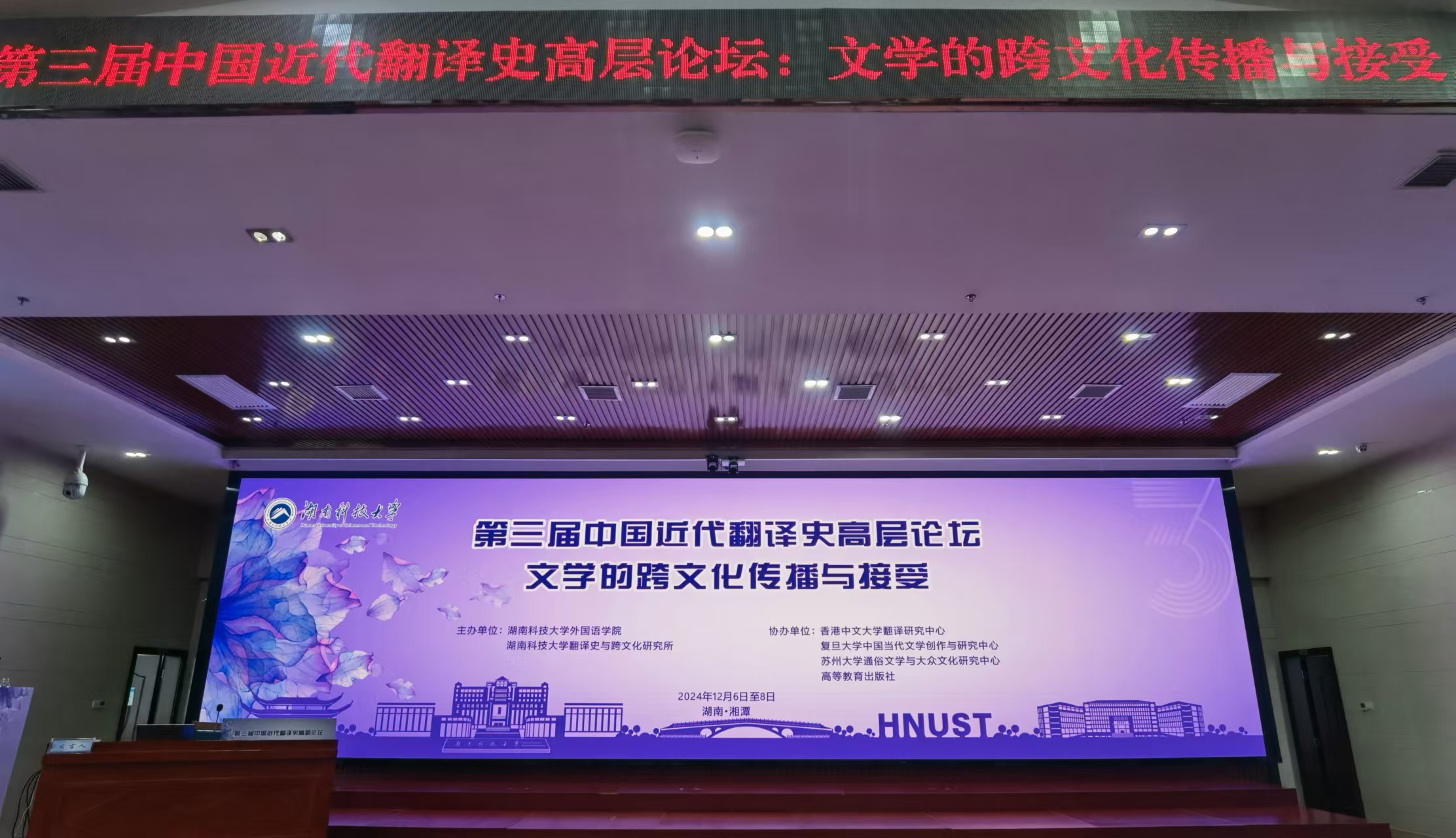 本网讯(通讯员:覃倢曼)2024年12月6日至8日,第三届中国近代翻译史高层论坛在湖南科技大学隆重举行。本次论坛由湖南科技大学外国语学院、湖南科技大学翻译史与跨文化研究所主办,香港中文大学翻译研究中心、复旦大学中国当代文学创作与研究中心、苏州大学通俗文学与大众文化研究中心以及高等教育出版社协办,吸引了全国各地百余位专家学者和师生共襄盛举。BB贝博艾弗森官方网站谢家顺教授应邀出席会议。