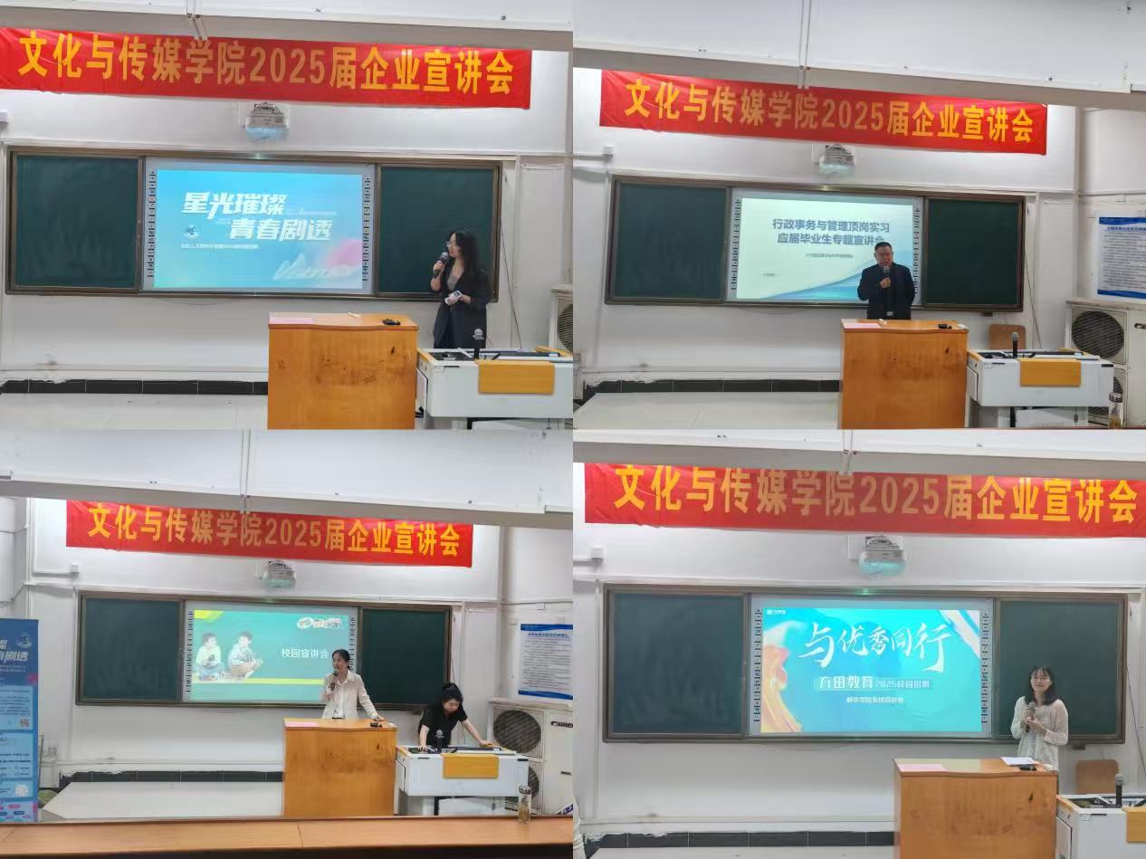 本网讯(通讯员:阳俊琍、吴頔)2025年4月9日,文化与传媒学院在教8(104)教室成功举办“岗位直通•企业对接日”活动。本次活动特别邀请多家由校友创办或担任高管的优质企业返校,搭建校友企业与应届毕业生的精准对接平台。