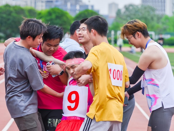 24 新闻本 1 班的张滢身兼运动员与志愿者,上午参加完女子八百米比赛,下午便投身参与教职工实心球项目的现场维护:“虽然没获奖,但我为实心球比赛的顺利进行贡献了力量,也传递了志愿者的精神。”