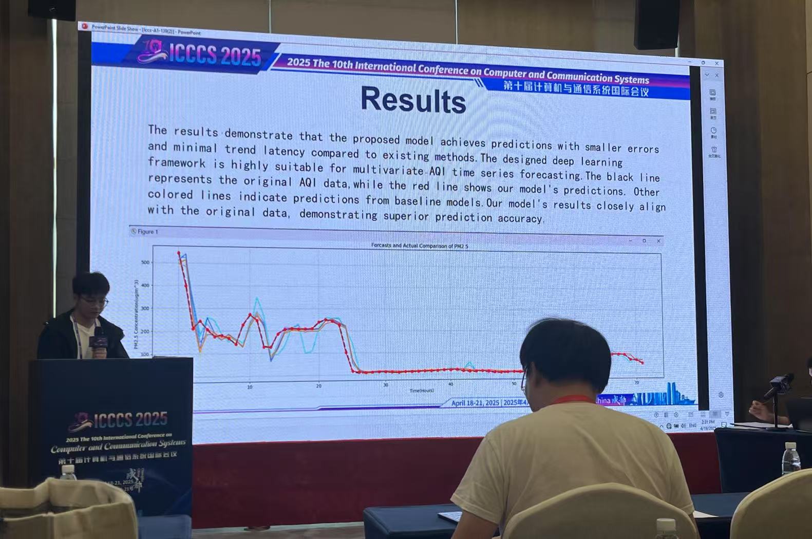 在“智能环境感知与预测”分论坛中,贝博官网大数据与人工智能学院李王建同学代表网络与信息系统软件实验室,作了题为《基于NLSTM的多任务空气质量预测模型》的学术报告。该研究创新性地将神经逻辑网络与长短期记忆模型相结合,在空气质量多指标联合预测任务中取得突破性进展,现场与悉尼科技大学、早稻田大学等国际团队进行了深入的技术探讨。