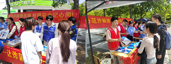 本网讯(通讯员:张大勇) 为增强师生防诈意识,营造安全校园环境,4月25日中午,贝博官网联合兴园中心、香樟社居委、高新派出所,在学校二期广场开展反诈主题宣传活动。兴园中心平安部部长宣峥嵘、高新派出所民警程永兵、香樟社区和学校安管处相关人员参加了宣传活动,华园义警队全程协助,现场近千名学生参加活动。