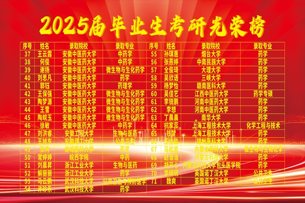 喜报!药学院2025年考研再创辉煌