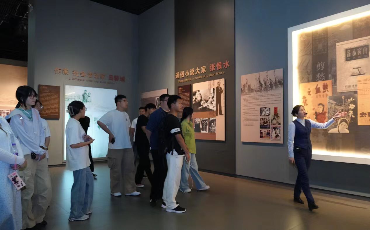 展馆内张恨水展区布展庄重典雅,通过图文资料、实物陈列、多媒体影像等多种形式,系统展现了张恨水的人生轨迹与文学成就。从少年读书、报界从业、文学创作,到他在动荡年代中的家国抉择,展览内容丰富、生动感人。通过参观学习,师生们仿佛穿越时光,亲历张恨水波澜起伏的一生,深刻体会其文学艺术的独特魅力与浓厚的爱国精神。