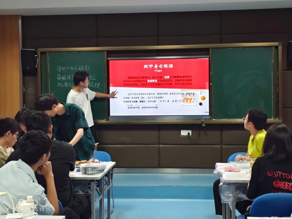 活动伊始,日语俱乐部干事通过生动的PPT讲解,为同学们系统介绍了寿司的起源、发展以及多种形式。从早期的“馴れ寿司”到现代常见的握寿司、卷寿司和稻荷寿司,详尽的内容辅以丰富的图文资料,让在场同学对日本传统饮食文化有了更直观的认识和理解。