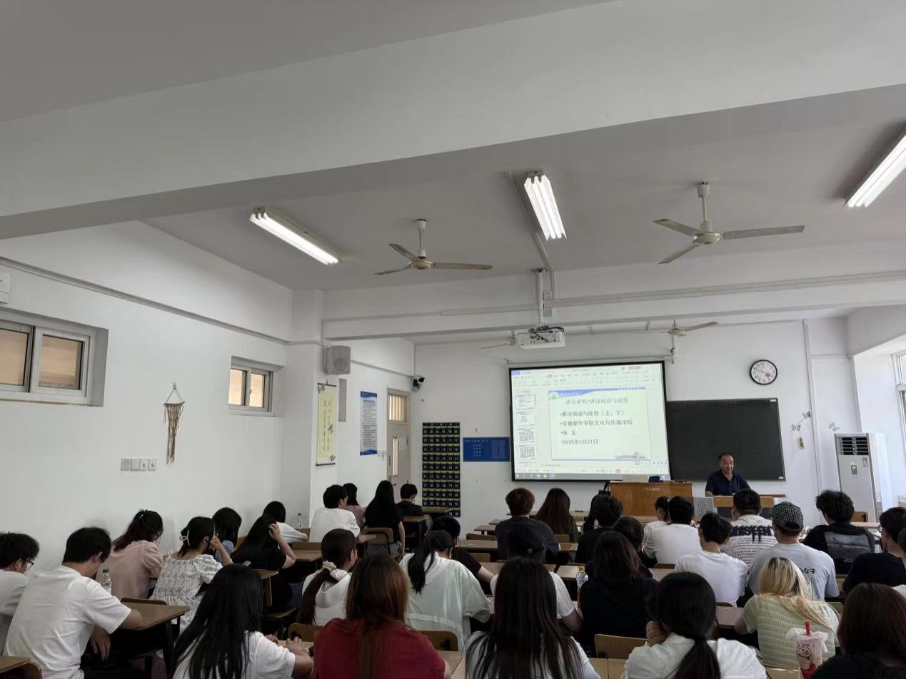 本网讯(通讯员:唐洁)为深化学生对中国古典诗歌的理解,领略唐诗的艺术魅力,文化与传媒学院于5月21日下午3:00在教5 - 215举办了一场主题为“唐诗是中国古典诗歌的巅峰,其艺术魅力源于意象与意境的精妙融合”的精彩讲座。本次讲座由朱玉教授担任主讲人,众多热爱古典文学的师生参与其中。