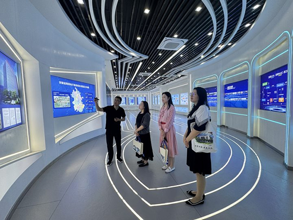 活动伊始,在孙伟主任的引导下,学院一行参观了产业园服务中心一楼展厅。孙伟详细介绍了服务中心的创建背景、发展规模、核心功能及其为区域内跨境电商企业提供的全方位服务,使学院代表对产业生态有了直观深入的了解。