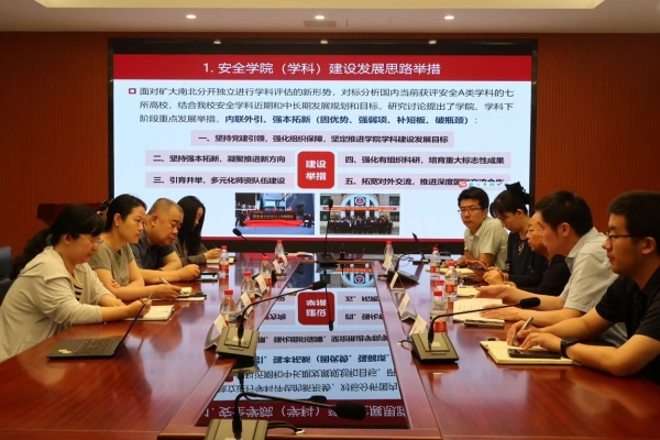 6月18日下午,我院一行前往北京化工大学机电工程学院调研交流。会议由机电工程学院副院长潘鑫主持,机电工程学院党委书记于洪杰、安全工程专业首任负责人张东胜、安全工程系党支部书记李静海、安全工程系党支部副书记窦站、安全工程系主任陈东梁、安全工程系副主任程礼盛及安全工程系副主任王倩琳参会,会上于洪杰对我院一行的到来表达了热烈欢迎,潘鑫介绍了机电工程学院的基本情况,陈东梁、窦站分别介绍了安全本科生人才培养的实践及经验、化工安全研究方向及成果报告等,汪青简要介绍了我院概况,随后双方就安全工程专业发展及未来转型方向、学生培养的差异化经验举措以及教师人才引进和培育等方面进行了深入的交流探讨。