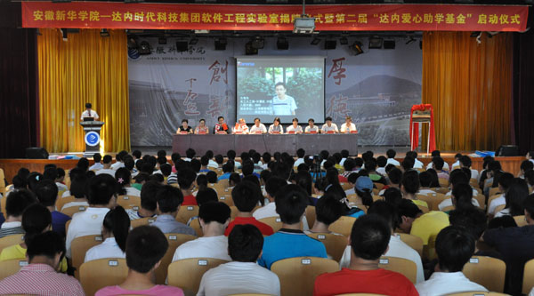据悉,达内时代科技集团与新华学院在2012年正式合作,并设立校内实训基地,签署产学研一体化合作协议。目前在信息工程学院已成功开设2期基地班,并为新华学子成功申请到2000元每人的爱心助学基金,第一期18名新华学子受益,接下来将共建软件工程实验室,合作开发教材,学分互换等。仪式上,校领导和达内集团领导对共建软件实验室给予揭牌,同时也启动了达内第二届“爱心助学基金”。