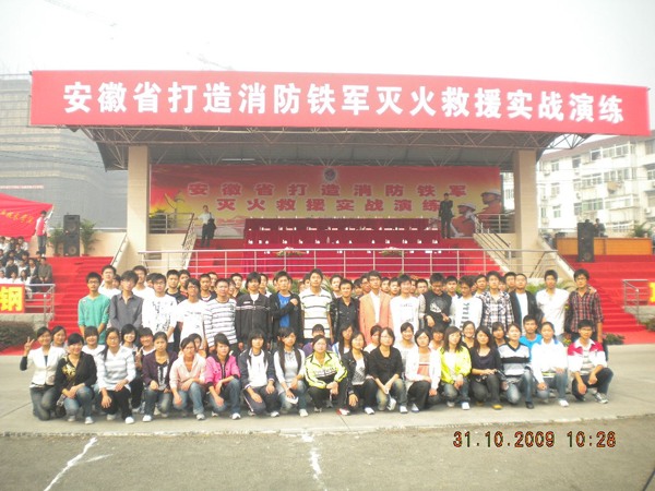 10月31日上午,由安徽省消防总队举行的“安徽省打造消防铁军灭火救援实战演练”活动在合肥市消防特勤基地进行。安徽省各市消防支队5000余名官兵参加此次演练,公安部消防局政委谢模乾将军和省消防总队党政机关有关领导出席本次活动。我院组织100余名学生观摩了此次灭火救援实战演练。