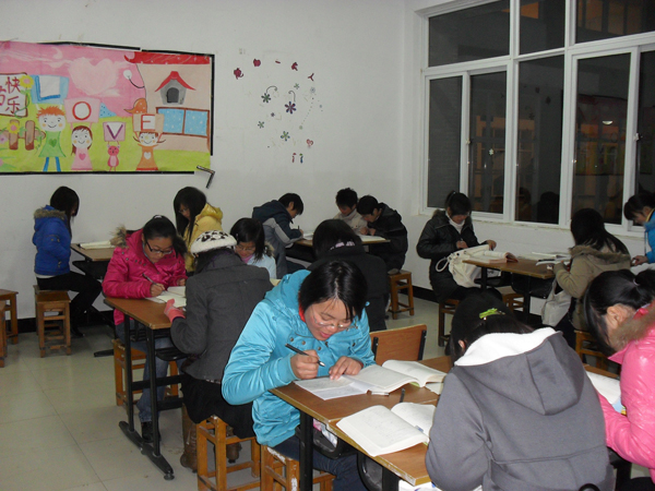 自习室开办以来,同学们的学习热情更高了,学习气氛也更加浓烈了。每天的自习室内总是座无虚席,同学们积极认真的学习态度,令老师们倍感欣慰。由于天气寒冷,自习室还特意为同学们准备了开水,让每一个来自习室学习的同学感到了温暖。