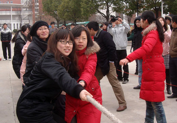 为庆祝国际妇女节,活跃我院教职工业余生活,提高广大女教职工体质水平,3月8日中午,由我院体育部组织的学院第二届女教职工拔河比赛拉开帷幕。