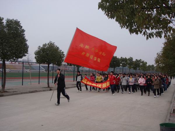 为提高同学的身体素质,外国语学院团总支学生会继承以往的优良传统,组织了一次以“达标争优,强健体魄”为口号的晨跑活动。