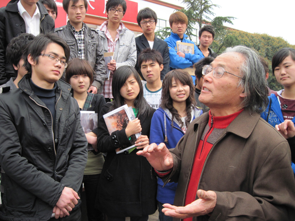 参观后,程乐萍老师与我院师生进行合影,并给学生当场讲解他的绘画心得和绘画感悟,同学们仔细聆听,认真做了记录。(人文艺术学院)