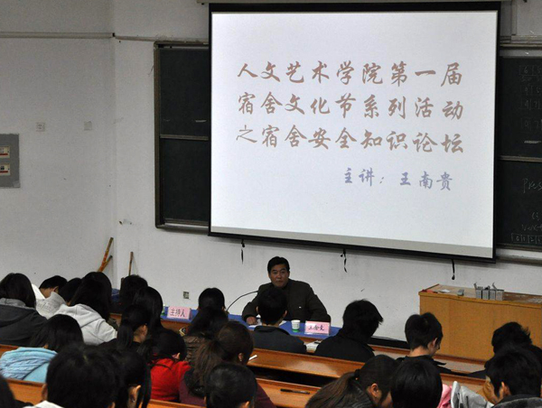 为了全面落实学院宿舍管理相关工作,人文艺术学院根据自身实际情况将开展“寝室文化节”系列活动。4月14日下午2点30分许,人文艺术学院组织学生会成员、班干和各寝室长开展了一场关于宿舍安全知识的论坛讲座。