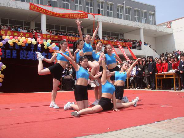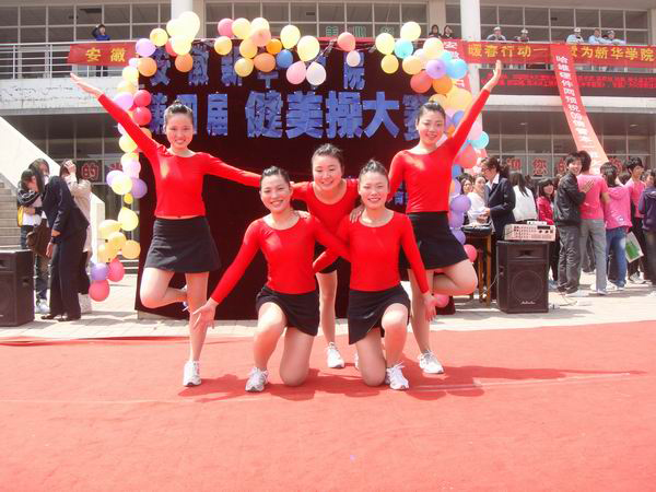4月16日中午,新华学院健美操大赛在我院工大广场激情开赛。