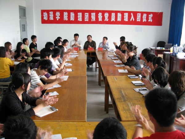 仪式开始,助理团指导老师介绍了将预备党员编入助理团的背景和原因。他说,预备党员是一个特殊的群体,他们是来自各个班级的优秀成员,但与一名真正的中共党员还有一定的差距。院领导将预备党员纳入助理团,是想借用院务助理团这个平台充分磨练和培养预备党员,以后动漫学院的预备党员将自动编入助理团,大家要端正态度、摆正心态,紧紧团结在主席团周围,做好为学员师生的服务工作,争取早日转正。