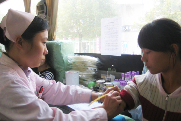 献血现场人流不断,很多同学都被这场景感染,停下脚步加入到了无偿献血的队伍之中。咨询处、体检处和献血车“三点一线”的献血流程安排让各项工作有条不紊地进行着。药学院团总支学会几名受专业培训的干事在咨询台为来往人群解答献血的问题,提醒献血时的注意事项,鼓励大家为社会公益事业出一份力。合肥血液中心医护人员在体检处认真为等待献血的同学们做各项身体检查,保证参加的同学符合献血标准。献血车上的医护人员认真操作,还不时和同学们聊聊家常,以减轻同学们的心理压力。