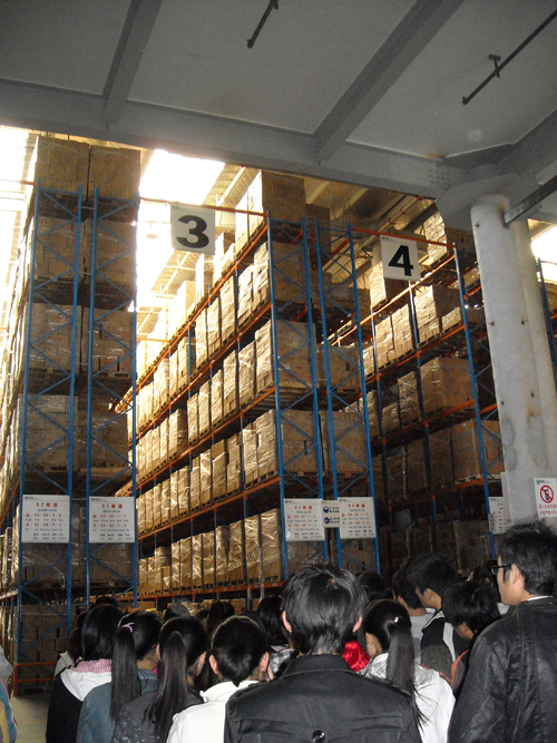 11月9日下午,商学院两位带队老师带领2009级物流管理专业近30名学生来到了位于合肥市经济技术开发区的宝供物流公司进行参观,宝供物流公司相关部门领导热情接待了我院参观的师生,并向学生了具体介绍了宝供的工作环境情况,就学生提出的工作安全保障、工资福利待遇、职业发展空间等问题向学生们作了详细解答,与同学们进行了交流。之后在宝供工作人员的带领下,师生们相继参观了公司的订单处理室、调度室、立体仓库等物流运作的核心部门。在订单处理室工作人员认真地向学生了介绍了订单的处理流程,在调度室介绍了车辆合理调度的一些方法和注意事项,在立体仓库着重介绍了货物出入库流程、叉车的使用、货位编排等情况。