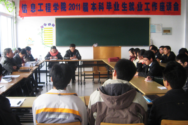12月8日中午,信息工程学院在4205教室召开2011届本科毕业生就业工作座谈会。信息工程学院领导、全体辅导员老师、部分学生代表参加座谈。