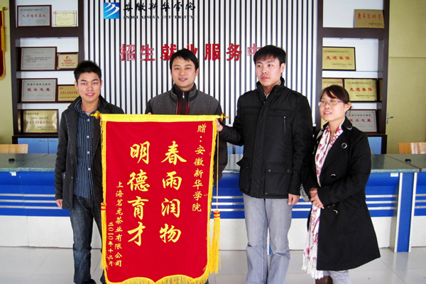 从招生就业办公室传来消息,12月8日上午,为表达对我院推荐人才的衷心感谢,上海茗龙茶叶有限公司人事部经理刘长虹一行四人专程来到我院招生就业办公室赠送锦旗,并进行座谈交流。