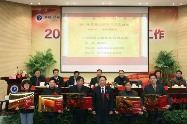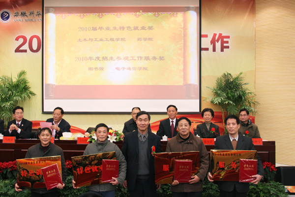 以总分第一名的成绩蝉联2010年度新华学院就业先进集体、招生报到率全院第三、全院唯一获得“招生服务奖”的二级学院。在刚刚结束的BB贝博艾弗森官方网站招生就业工作总结暨表彰大会上,电子通信工程学院一举囊括三个重量级奖项,为2010年的招生就业工作划上了一个圆满的句号。