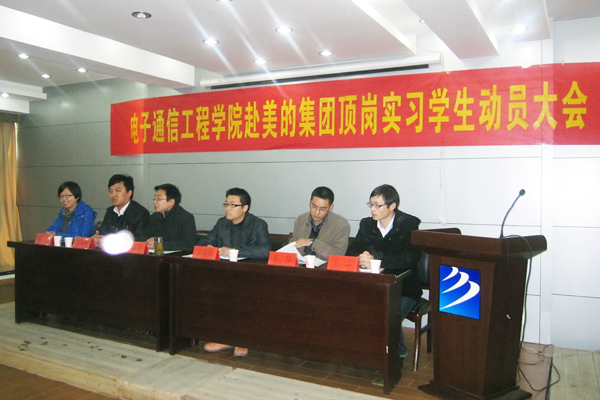 依照人才培养方案,电子通信工程学院2009级应用电子专业70名学生即将进入顶岗实习环节。为认真做好该项工作,引导学生做好实习准备,强调实习的重要意义,电院于2月25日上午在管理学院召开顶岗实习动员大会,教务处副处长王琦进、电院行政副院长操宏华、美的集团洗衣机部人事经理王友坤、招生就业办等相关人员参加了动员大会。