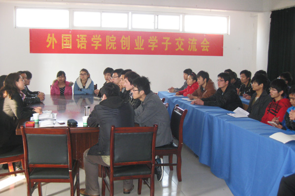 11月25号下午,外国语学院举行毕业生就业创业经验交流会。此次交流会邀请到了外国语学院成功创办企业的毕业生代表:合肥温新教育的刘建涛,东京天树语言陪训学校的胡景两位同学。外国语学院行政副院长李洁、行政秘书、辅导员代表和30多名有创业意向的外院同学参会。