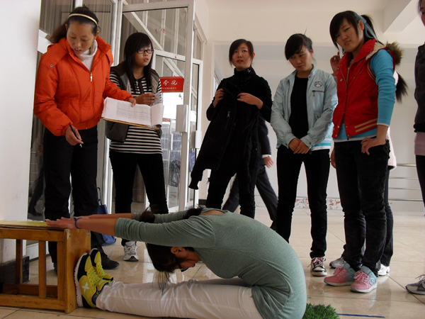 今年的测试主要针对2010级和2011级共7800余名学生进行,内容包括身高、体重、肺活量、1000米(男)和800米(女)、坐位体前屈、立定跳远,共6项测试项目。目前,各项测试的后期数据整理工作正在紧张、认真的进行当中。