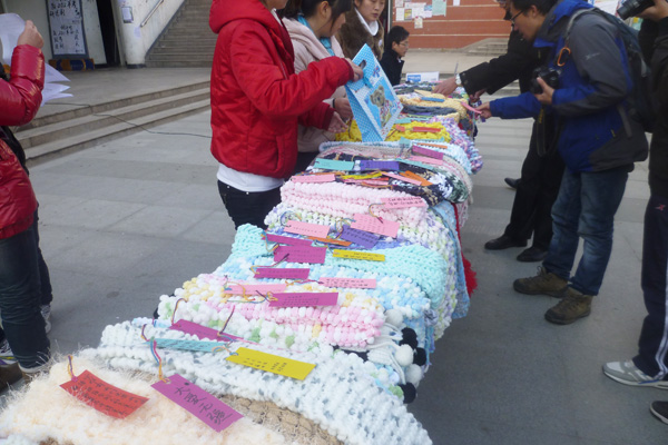 据BB贝博艾弗森官方网站青年志愿者协会会长黄影介绍,从 11月1日起,志愿者们就开始进班宣传织围脖活动。织围脖很有意义,同学们自己买线、自己编织,围脖不仅是一份爱心的传递,也可以锻炼同学们的动手能力。“同学们很积极很感兴趣,男同学尤其热情。男同学基本上不会织,他们都主动向女生请教,我们学校收集的围脖中,男生织得比较多。”黄影微笑着告诉记者。